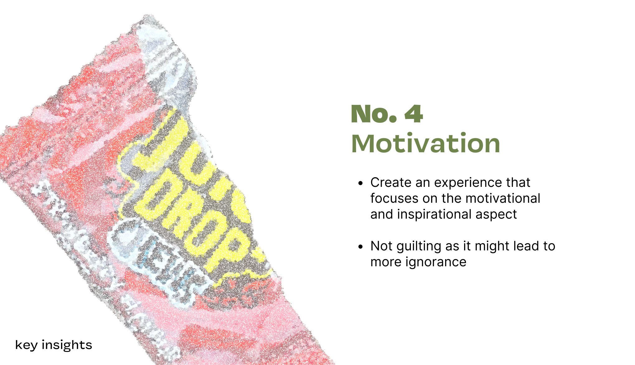 Based on the practicalities, a framework of key research insights was selected to approach and guide our design concepts.